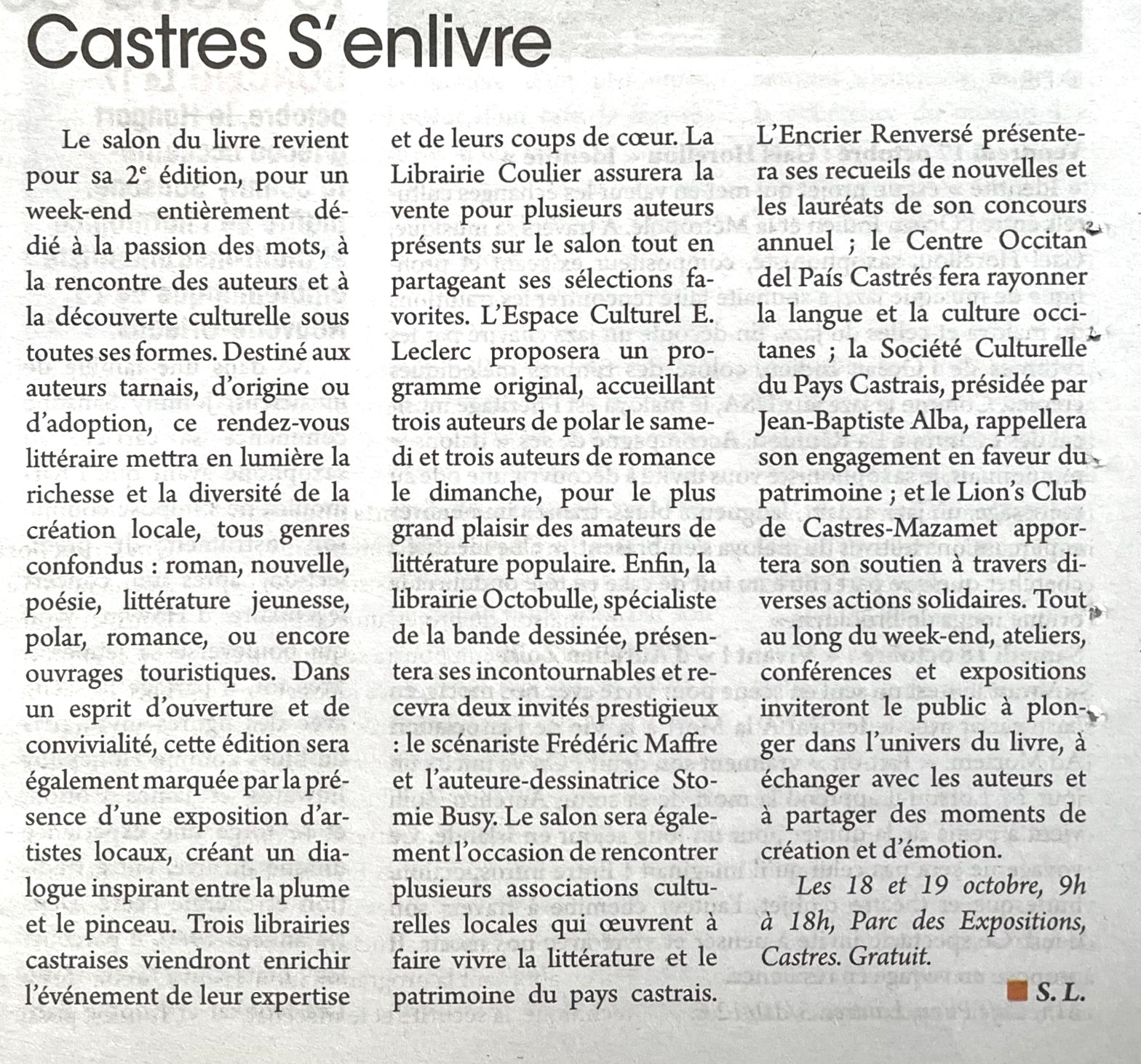 18/19 octobre 2025Deuxième édition de Castres s’enlivre